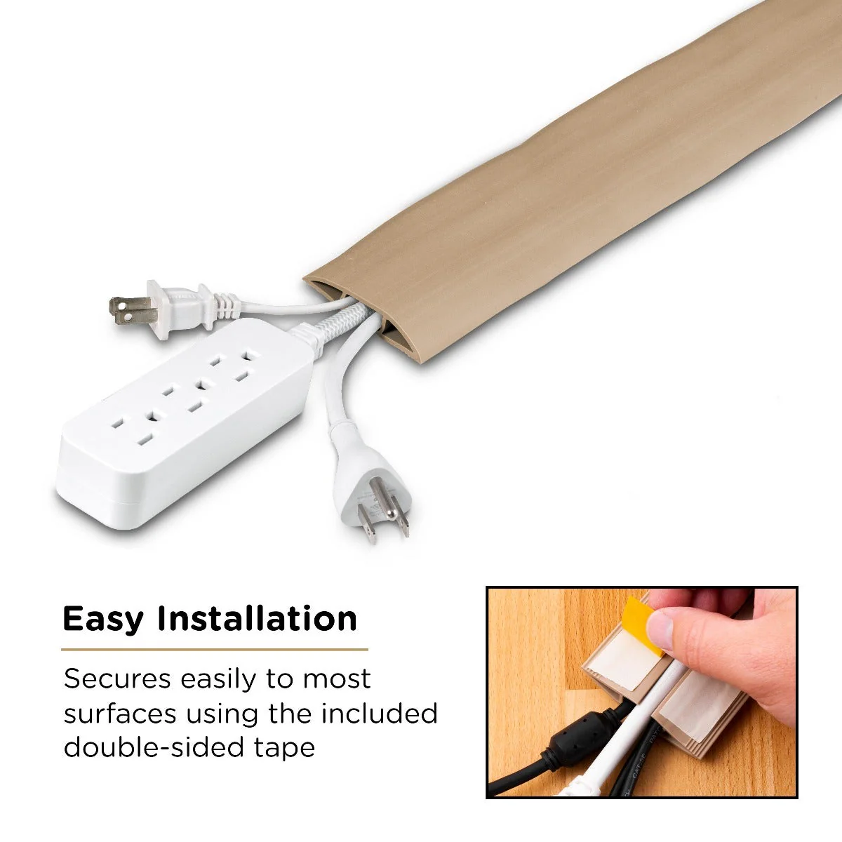 The durable covers are made from a resilient PVC material that is engineered to provide safety and security and can be easily cut to any desired length. This all-in-one package also includes double-sided tape to make your installation quick and easy. Simply slide wires, cables and cords into the pre-slit bottom of the unit and secure to the desired surface. With the Cordinate Floor Cord Cover, you no longer have to choose between style and function.