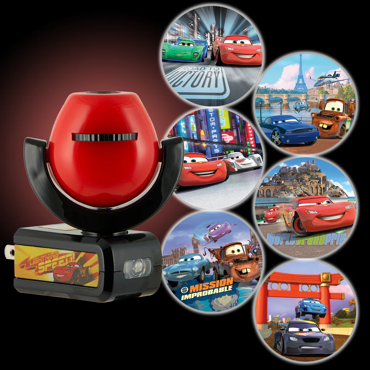 Projectables Disney Pixar Cars Light Sensing 6-Image LED Night Light, Black